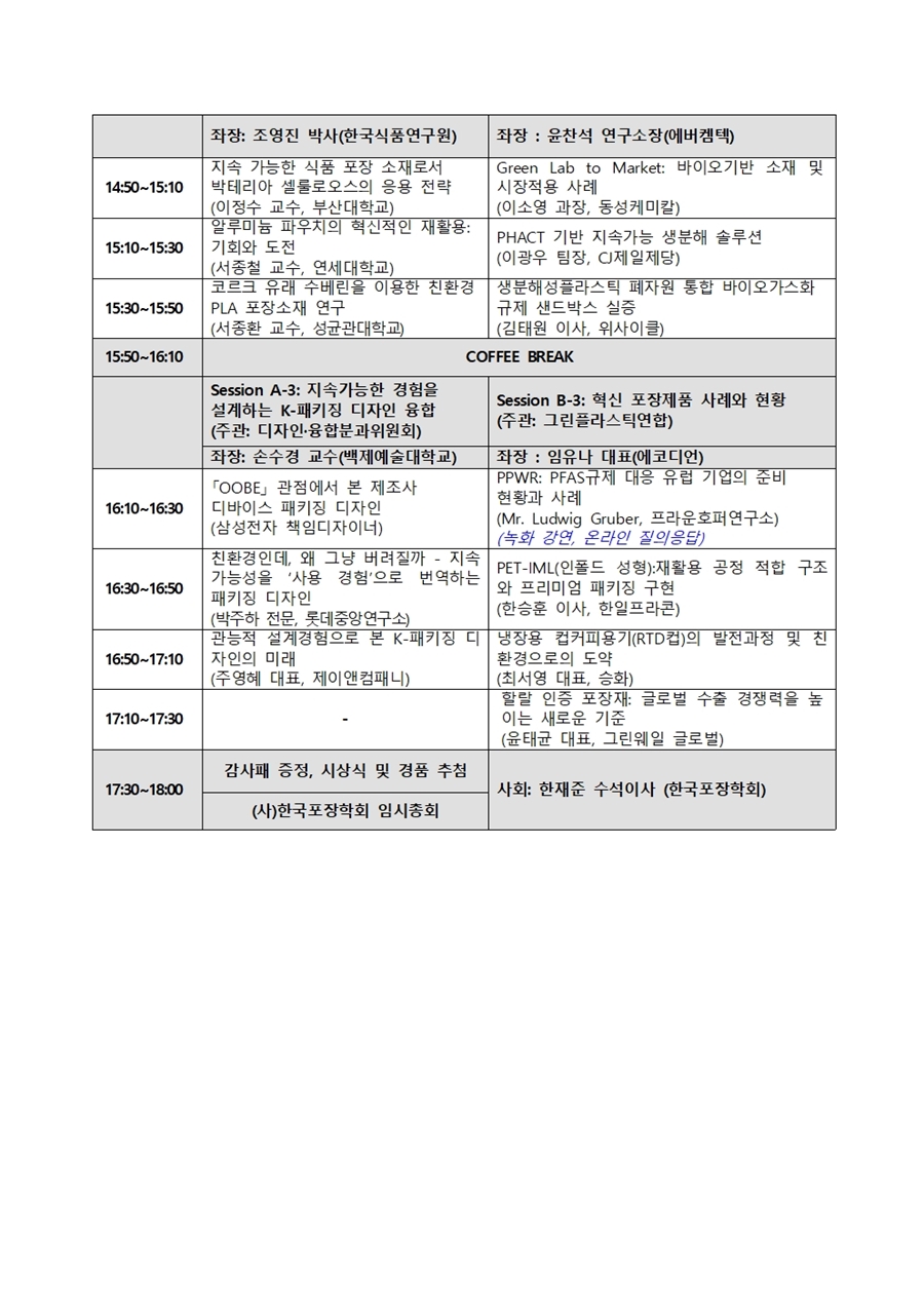 - 2026 제69회 한국포장학회 춘계학술대회 프로그램(안) 안내
