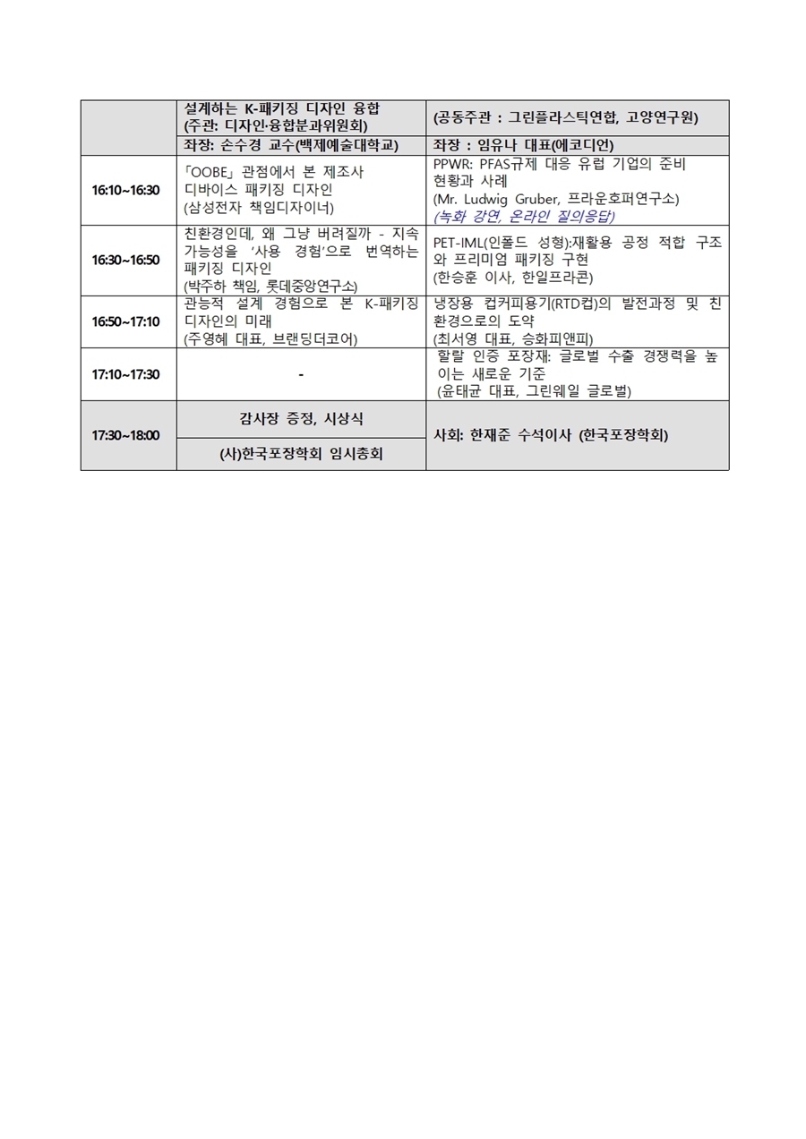 - 2026 제69회 한국포장학회 춘계학술대회 프로그램(안) 안내