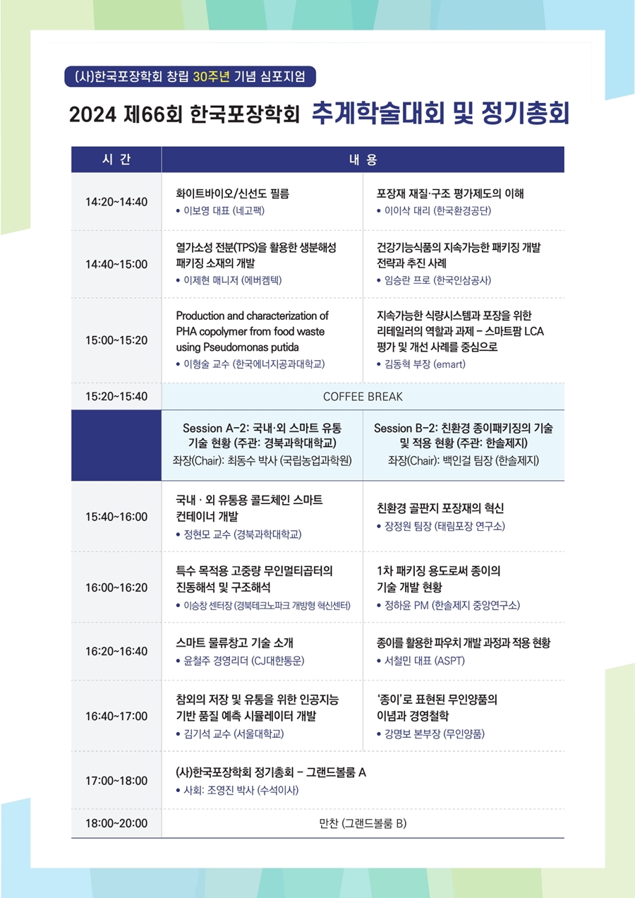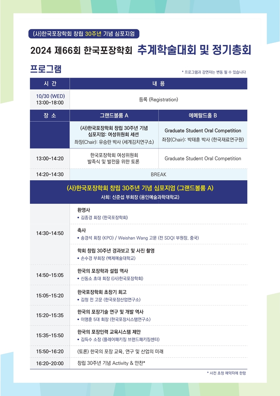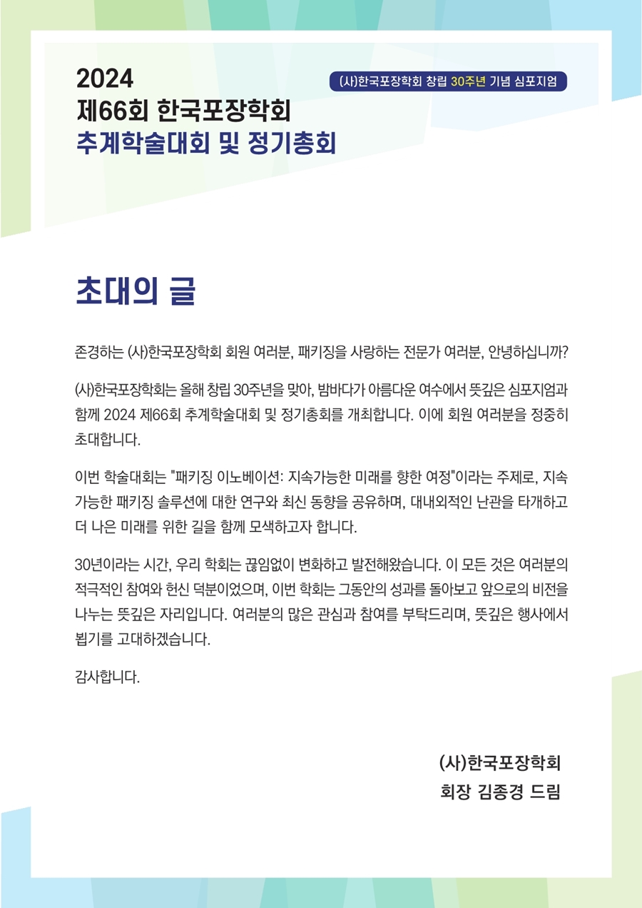 - 2024 제66회 한국포장학회 추계학술대회 안내