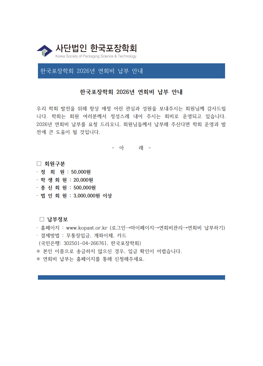 2026년 학회 가입 및 학회비 납부 안내