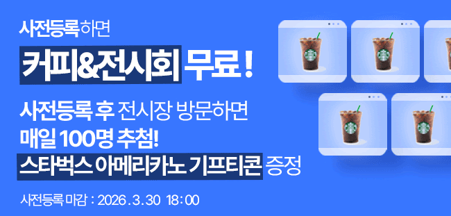 전시회 사전등록은 전시개막 전날인 3. 30(월) 오후 6시까지 홈페이지를 통해 사전등록이 가능합니다.