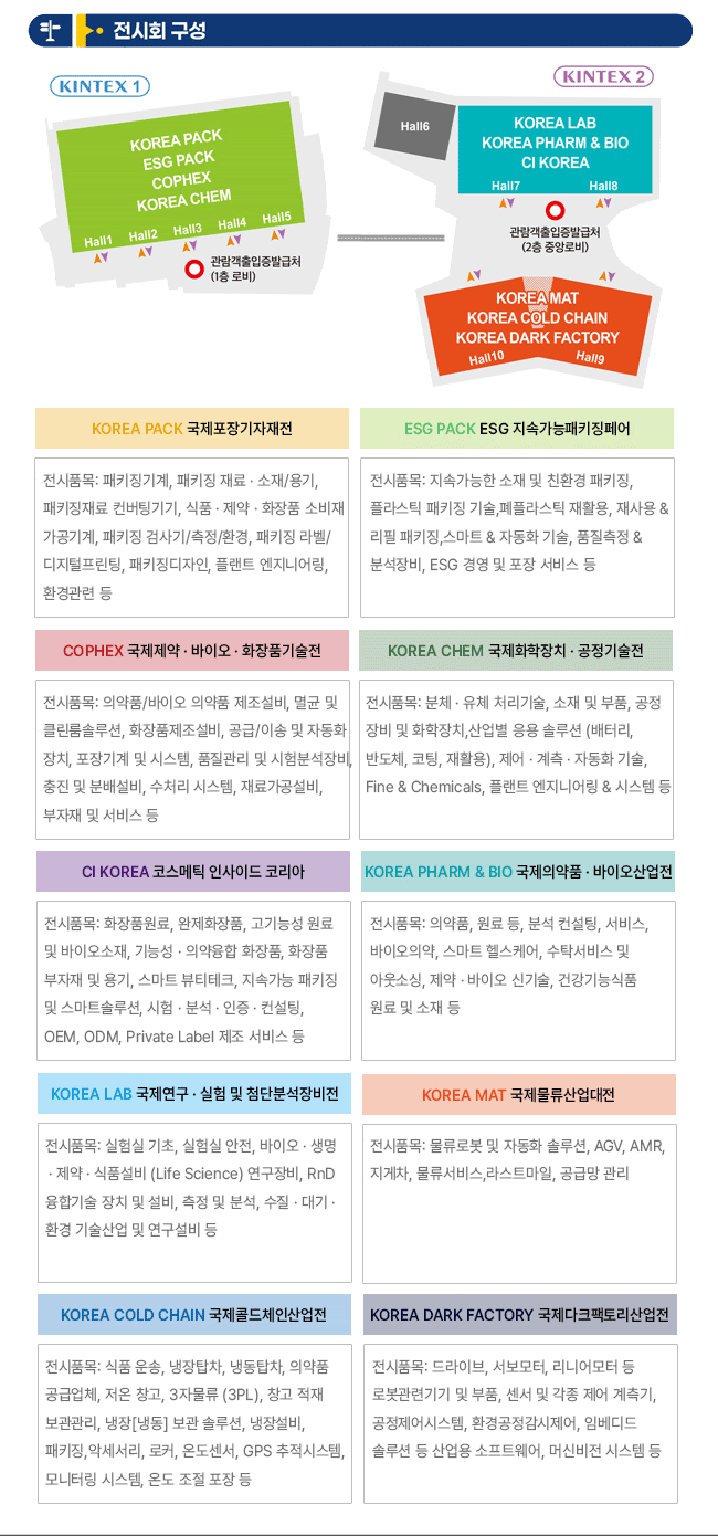 ICPI WEEK는 큰 타이틀로 10개의 전시회로 구성되어 있으며, 이 중 ESG지속가능패키징페어가 포함되어 있습니다.