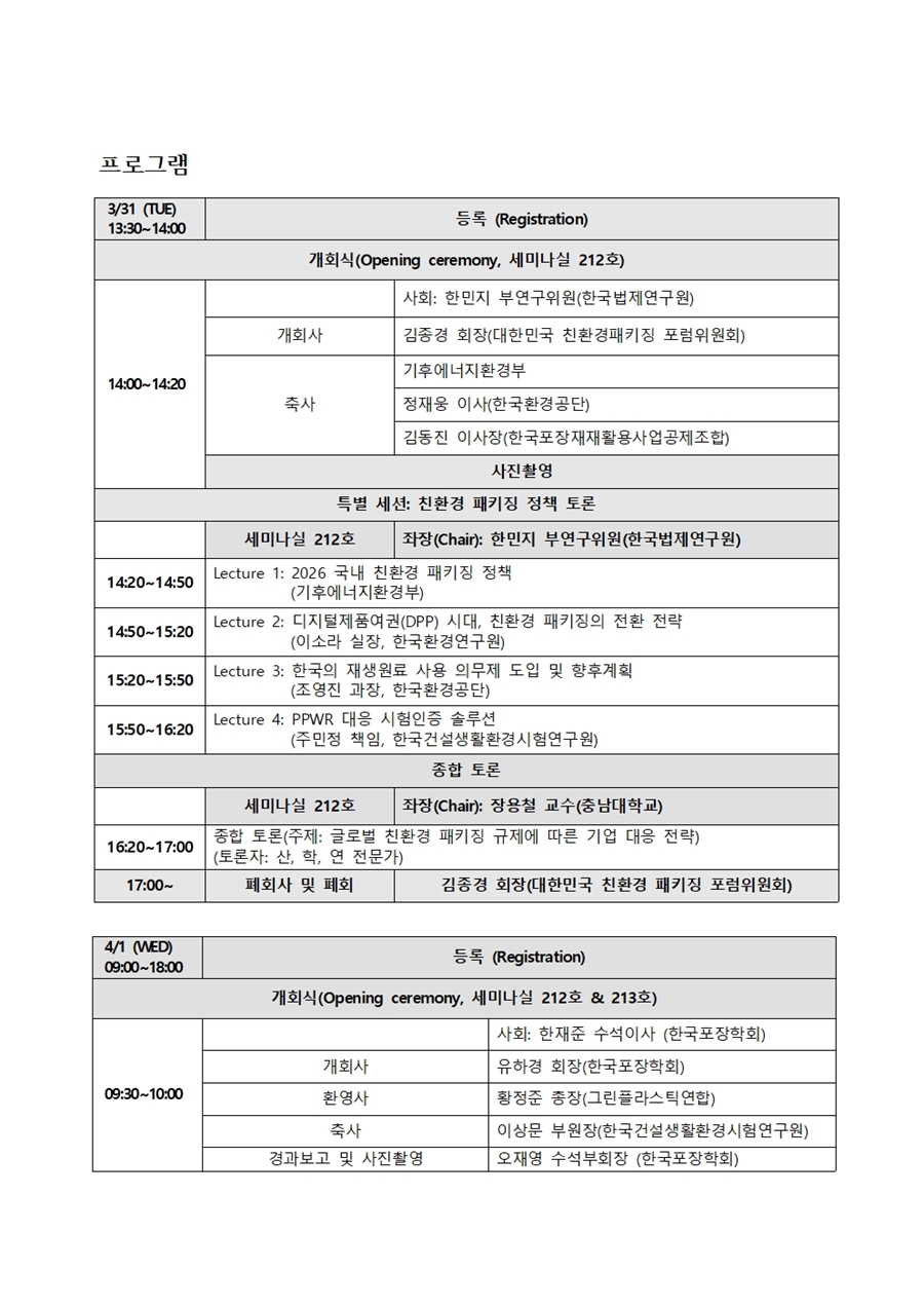 - 2026 제69회 한국포장학회 춘계학술대회 프로그램(안) 안내