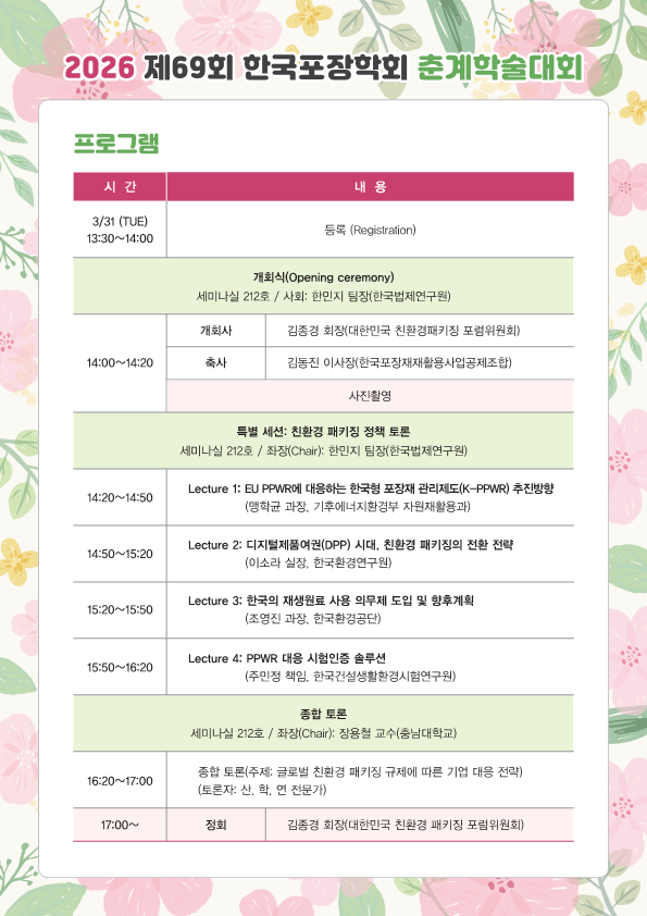 - 2026년 제69회 한국포장학회 춘계학술대회 프로그램 안내